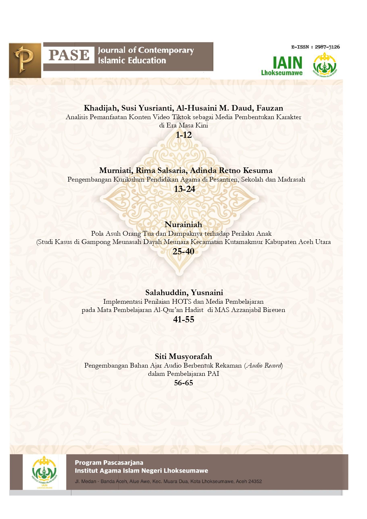 Pase: Journal of Contemporary Islamic Education